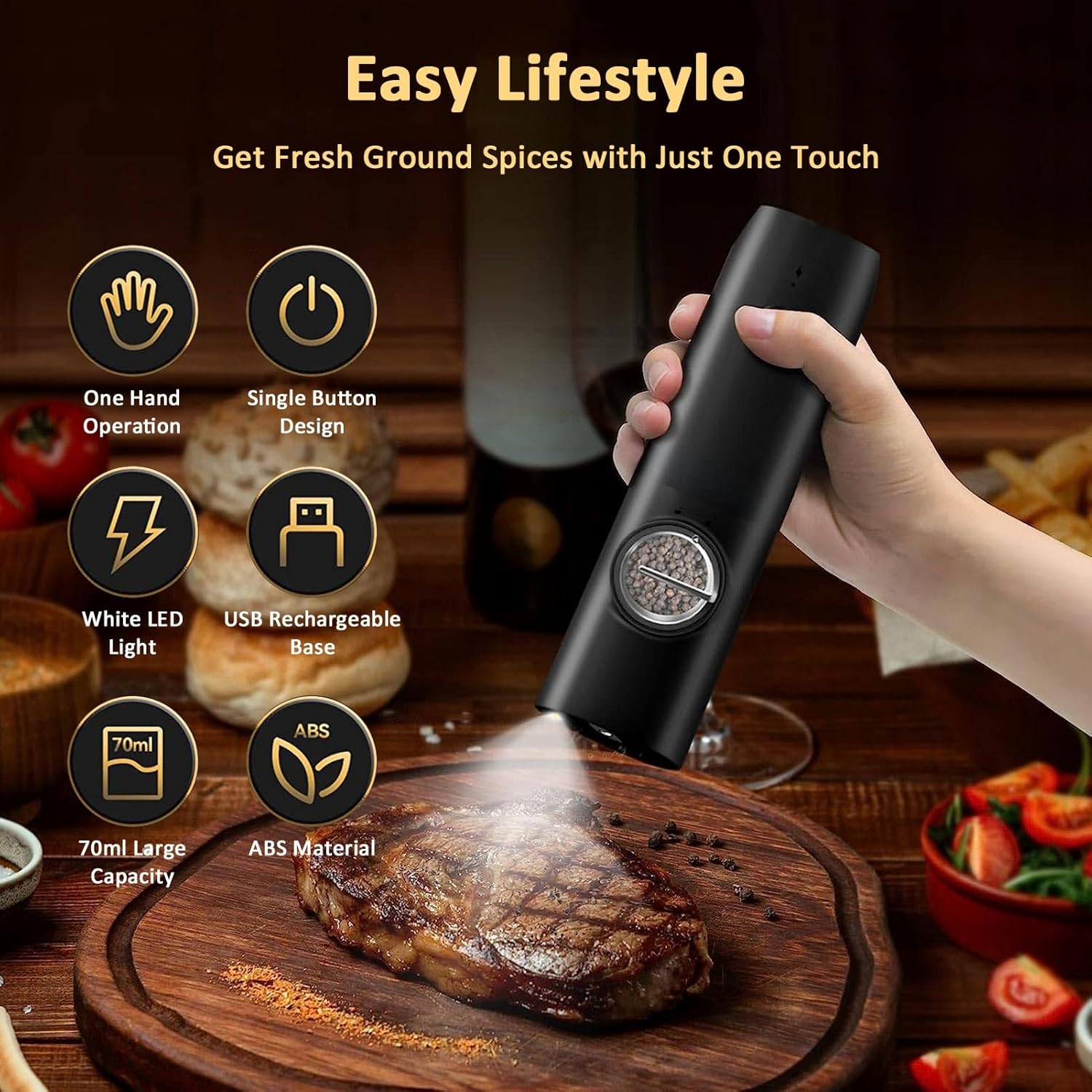 ๐ค One-Handed Operation โ Effortlessly grind with a simple tilt or press.
