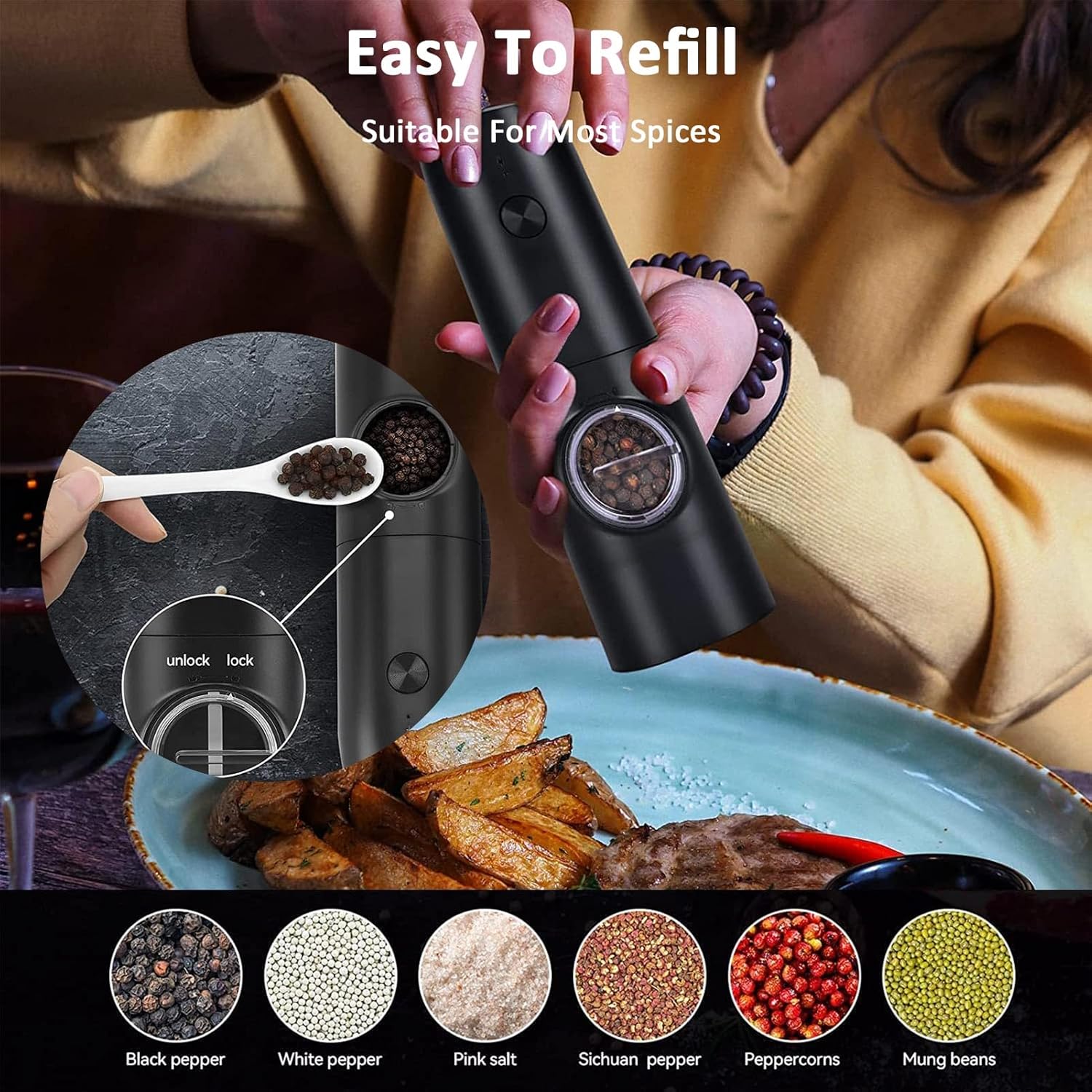 ๐ฝ๏ธ Perfect for All Spices โ Peppercorns, sea salt, Himalayan salt & more.